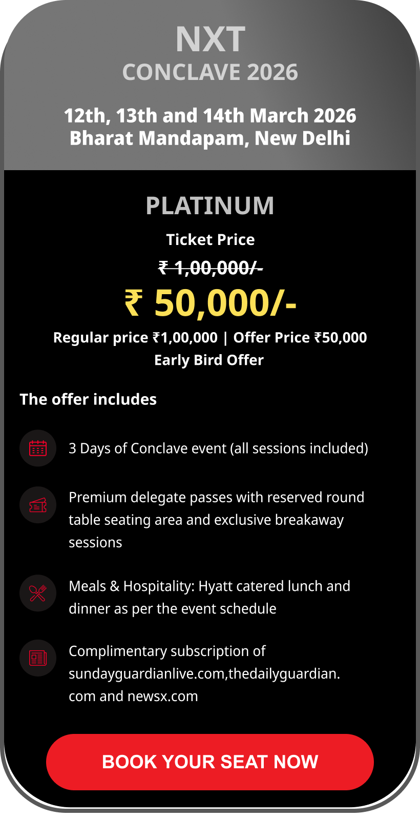 Kindly share your details to reserve your exclusive Conclave pass. Tickets will be issued as per the details shared below. Limited seats available.